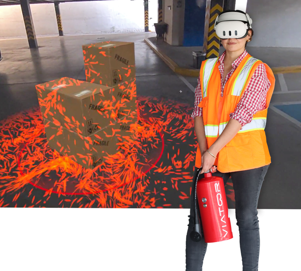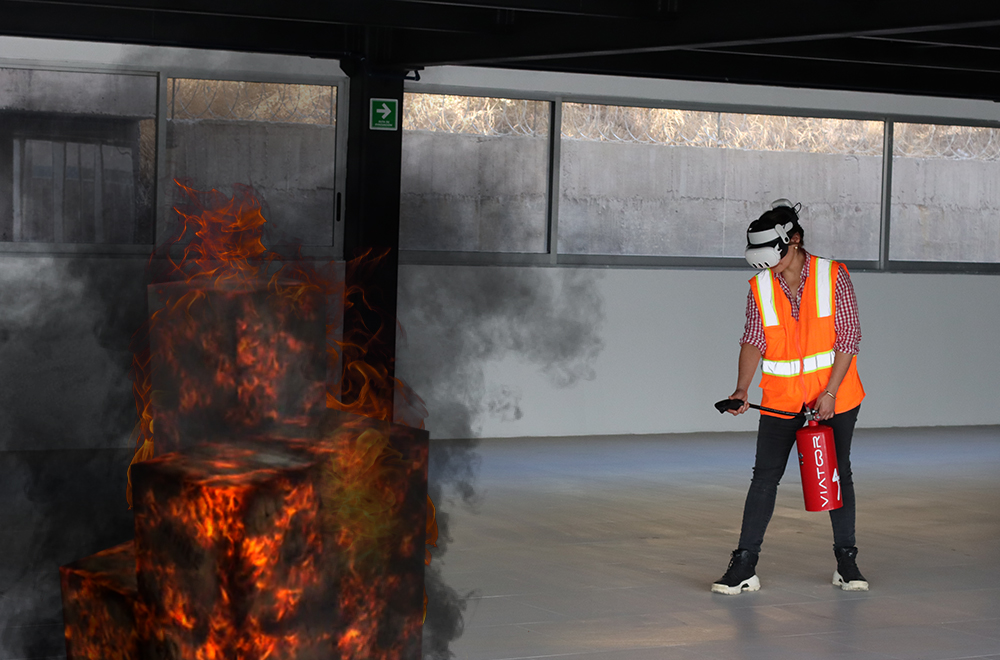 Sistema en realidad mixta donde las capacitaciones se combinan en un entorno físico y virtual. Entrena y prepara en el uso del extintor en situaciones de emergencia con total confianza y sin riesgos.
