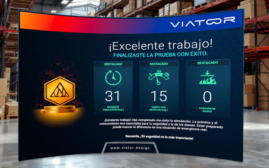 Realiza entrenamientos con extintores reales en un entorno virtual seguro, optimizando tiempo, recursos, permisos y tendrán la libertad de repetir el ejercicio cuantas veces sea necesario.